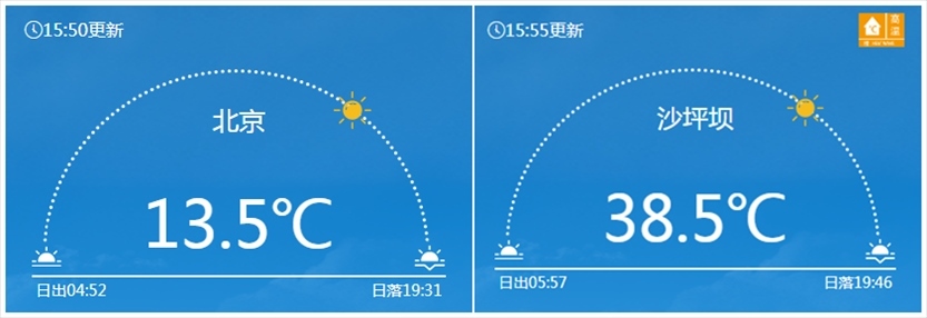先用一張圖感受下今天南北方的涼熱不均↓