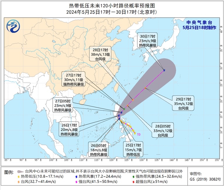 再看看菲律賓附近熱帶低壓,其中心今天下午5點(diǎn)鐘位于菲律賓馬尼拉東南方大約225公里的菲律賓群島中部,預(yù)計(jì)將于未來12小時(shí)內(nèi)加強(qiáng)為今年第1號臺(tái)風(fēng),明后天將在菲律賓呂宋島東部海面逐漸轉(zhuǎn)向東北方向移動(dòng)。