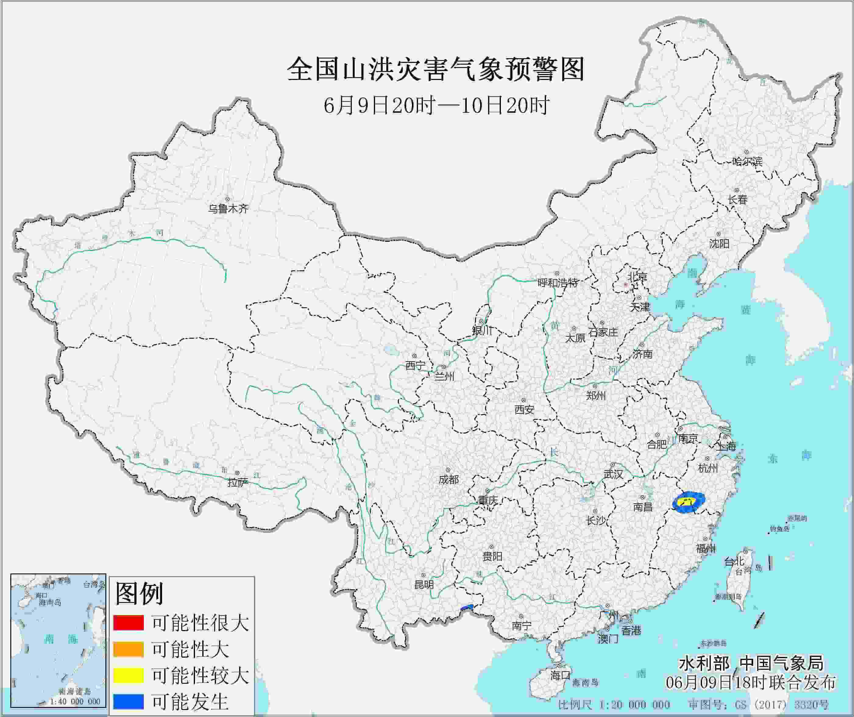 央視網(wǎng)消息:水利部和中國氣象局6月9日18時聯(lián)合發(fā)布黃色山洪災害氣象預警。