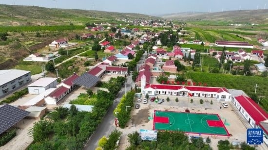 這是寧夏中衛(wèi)市海原縣史店鄉(xiāng)田拐村境內(nèi)的一條柏油農(nóng)村公路(7月24日攝,無(wú)人機(jī)照片)。