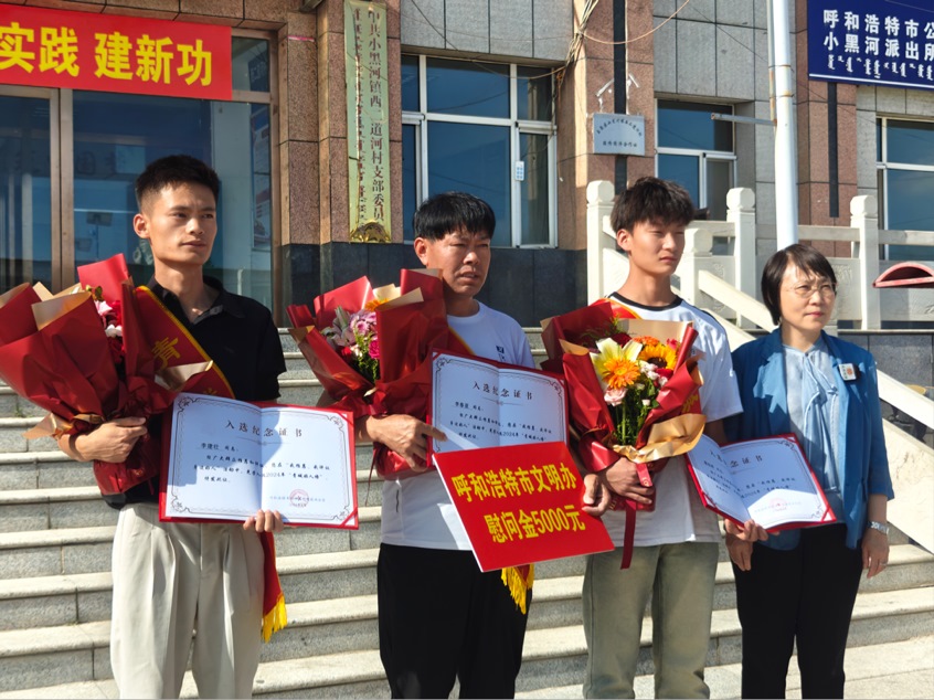 8月13日,張東霞來到玉泉區(qū)小黑河鎮(zhèn)西二道河村委會,慰問見義勇為的李春亞、李健壯、秦志翔3人,為他們送上鮮花、佩戴“青城好人”綬帶、頒發(fā)榮譽(yù)證書和“青城好人”獎?wù)?,授予“青城好人”榮譽(yù)稱號,并給予5000元慰問金,對他們在危難時(shí)刻勇救他人的行為給予肯定和贊譽(yù)。