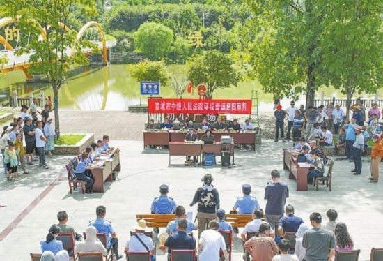 8月15日,安徽省宣城市中級(jí)人民法院法官來(lái)到位于廣德市柏墊鎮(zhèn)的飲用水源地附近,公開(kāi)審理一起生態(tài)環(huán)境損害賠償訴訟案。