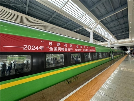 人民網(wǎng)昆明8月22日電 (孝金波、高清揚)今日,2024年“全國網(wǎng)絡普法行·云南站”活動在昆明啟動。作為活動的一大亮點,在昆明南站始發(fā)的“e路有法 命運與共”普法專列滿載著法律知識,沿著中老鐵路這一國際大通道,為乘客們打造了別開生面的普法之旅。