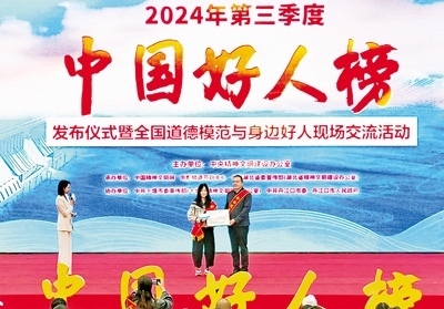30多年堅守海上救援的“漁家子弟”董建海,數(shù)九寒天跳入冰窟救人獻(xiàn)出生命的普通村民高元嶺,自愿守護(hù)烈士英靈43載的退伍老兵顧平,犧牲在防汛一線的90后基層干部李東,21年不離不棄照料患病親人的好兒媳王秀杰……11月12日,由中央精神文明建設(shè)辦公室主辦的2024年第三季度“中國好人榜”發(fā)布儀式暨全國道德模范與身邊好人現(xiàn)場交流活動在湖北省十堰市舉辦,經(jīng)各地推薦、網(wǎng)友評議和專家評審等環(huán)節(jié),共有152人(組)助人為樂、見義勇為、誠實(shí)守信、敬業(yè)奉獻(xiàn)、孝老愛親身邊好人光榮上榜。