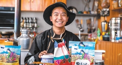 四川省甘孜藏族自治州甲洼鎮(zhèn),當?shù)厍嗄暝谡故局辈ナ圪u的商品。越來越多年輕人扎根家鄉(xiāng),為川藏公路沿線發(fā)展注入活力。