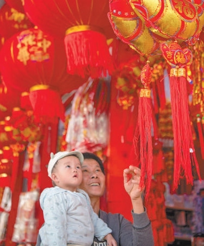 海南瓊海市民在商店選購(gòu)過(guò)年飾品。