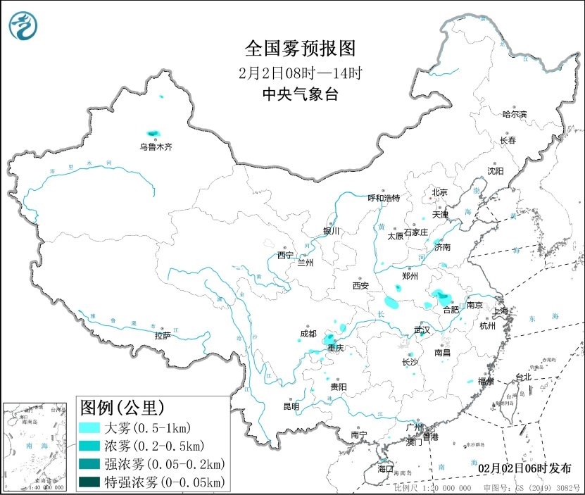 預(yù)計(jì),2月2日早晨至上午,瓊州海峽部分海域、安徽西部、湖北北部、重慶西部等地將有能見(jiàn)度不足1公里的大霧,局地有能見(jiàn)度不足500米的濃霧。