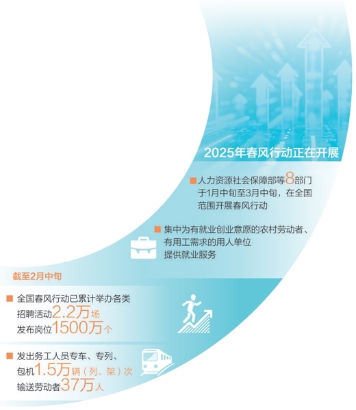 眼下,大批農(nóng)民工陸續(xù)返崗,各地人社等部門積極開展春風(fēng)行動,推出一系列就業(yè)服務(wù)活動,拓展就業(yè)增收渠道。記者從人力資源社會保障部獲悉:截至2月中旬,全國春風(fēng)行動已累計舉辦各類招聘活動2.2萬場,發(fā)布崗位1500萬個;發(fā)出務(wù)工人員專車、專列、包機(jī)1.5萬輛(列、架)次,輸送勞動者37萬人。