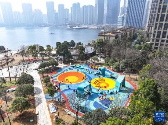 這是2月27日拍攝的長沙市銀杏公園一角(無人機(jī)照片)。