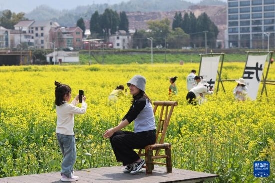 近期,浙江省建德市更樓街道城南城市田園的油菜花競相開放,一場春日花田市集也在花田邊開啟,游客們支起帳篷天幕在田間賞花海、品美食,盡享春光。