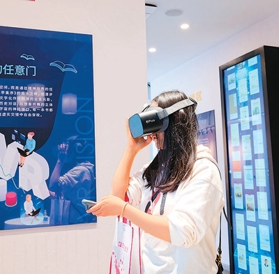 近日,云南省第四屆全民閱讀大會在昭通市昭通古城舉行。活動包括惠民書展、非遺體驗、文創(chuàng)展銷等活動,營造愛讀書、讀好書、善讀書的書香氛圍。圖為市民在云南省昭通市一家書店體驗VR閱讀。