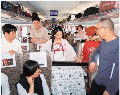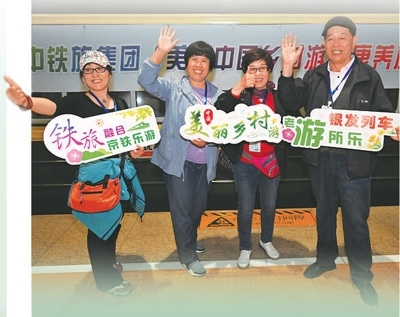 旅客乘坐“美麗中國(guó)鄉(xiāng)村游”康養(yǎng)旅游專列。