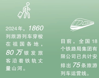今年2月,商務(wù)部、文化和旅游部、中國(guó)國(guó)家鐵路集團(tuán)有限公司等9單位聯(lián)合發(fā)布《關(guān)于增開銀發(fā)旅游列車促進(jìn)服務(wù)消費(fèi)發(fā)展的行動(dòng)計(jì)劃》,指出要擴(kuò)容旅游列車線路和產(chǎn)品,豐富銀發(fā)旅游列車產(chǎn)品供給,建立品質(zhì)型、舒適型、普惠型產(chǎn)品體系。目前,全國(guó)18個(gè)鐵路局集團(tuán)有限公司已共計(jì)安排出75條旅游列車運(yùn)營(yíng)線。一趟趟銀發(fā)列車如春日繁花次第綻放,為老年人鋪就通往詩(shī)與遠(yuǎn)方的旅途,更以流動(dòng)的風(fēng)景線激活沿線文旅消費(fèi),為推動(dòng)經(jīng)濟(jì)高質(zhì)量發(fā)展注入“銀發(fā)”新動(dòng)能。