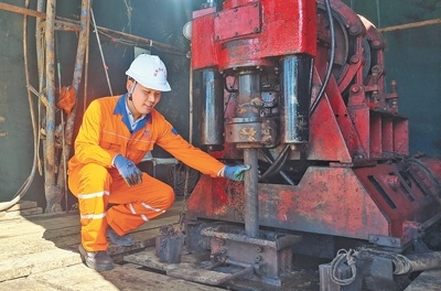“一開始,看著其他同學生活多姿多彩,我內(nèi)心曾有些許波動。但當看到前輩們說起找到礦時神采奕奕的樣子,我心里就有了底氣,也明白了堅守的意義?!笔┕み^程中,李寬和同事潛心研究、認真分析,解決了鉆孔縮徑、掉塊、漏失等多個技術難題。