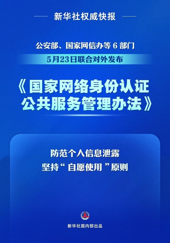 破解公民身份信息網(wǎng)絡(luò)泄露難題,加強個人信息保護(hù)。公安部、國家網(wǎng)信辦等6部門5月23日聯(lián)合對外發(fā)布《國家網(wǎng)絡(luò)身份認(rèn)證公共服務(wù)管理辦法》,推進(jìn)國家網(wǎng)絡(luò)身份認(rèn)證公共服務(wù)建設(shè),進(jìn)一步推廣應(yīng)用公共服務(wù)。
