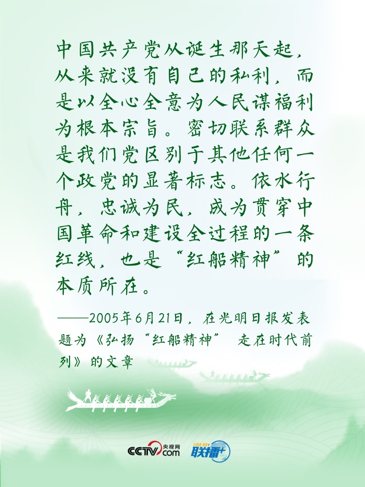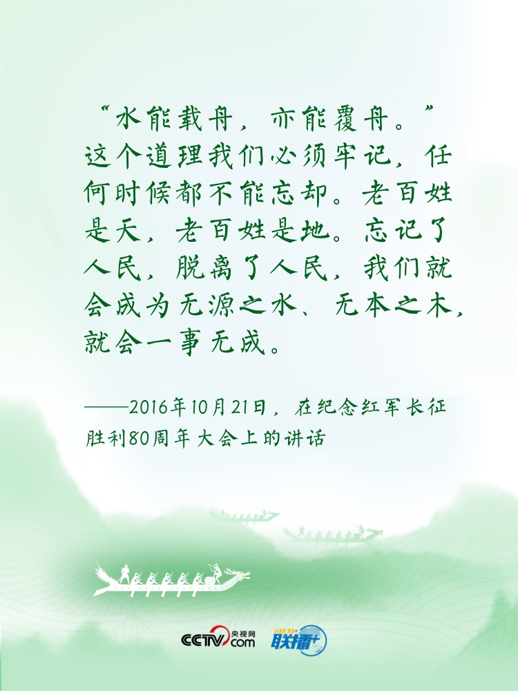 過端午,賽龍舟。龍舟這項傳統(tǒng)運動,象征著中華民族的拼搏、堅韌、團結(jié),承載著深植在民族基因里的愛國主義之魂。“舟”字自古以來在中華傳統(tǒng)文化中都有著深刻寓意?!耙浪兄郏艺\為民”“逆水行舟,不進則退”......習近平總書記曾多次以“舟”為喻闡釋思想,寄情言志。央視網(wǎng)《聯(lián)播+》特進行梳理,讓我們沿著總書記指引的方向,團結(jié)奮進,砥礪前行?! ?/p>
