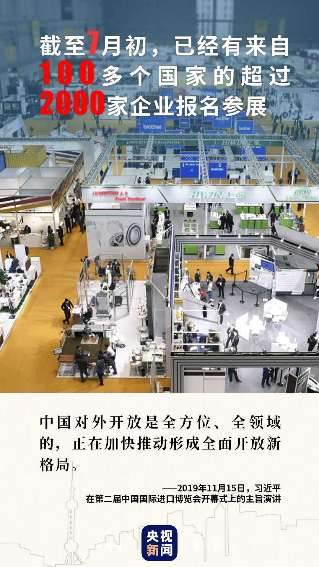100天后,第三屆進(jìn)博會(huì)將如期舉行。中國(guó)機(jī)遇、世界共享,未來(lái)可期。
