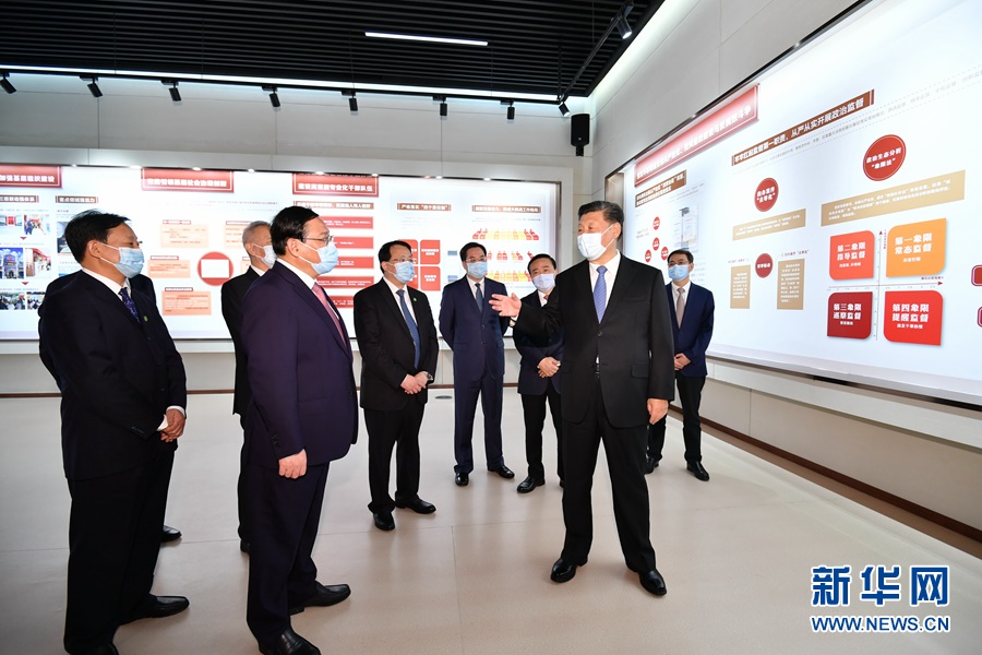 慶祝大會(huì)后,總書記來到浦東展覽館,參觀“在國(guó)家戰(zhàn)略的引領(lǐng)下——浦東開發(fā)開放30周年主題展”。