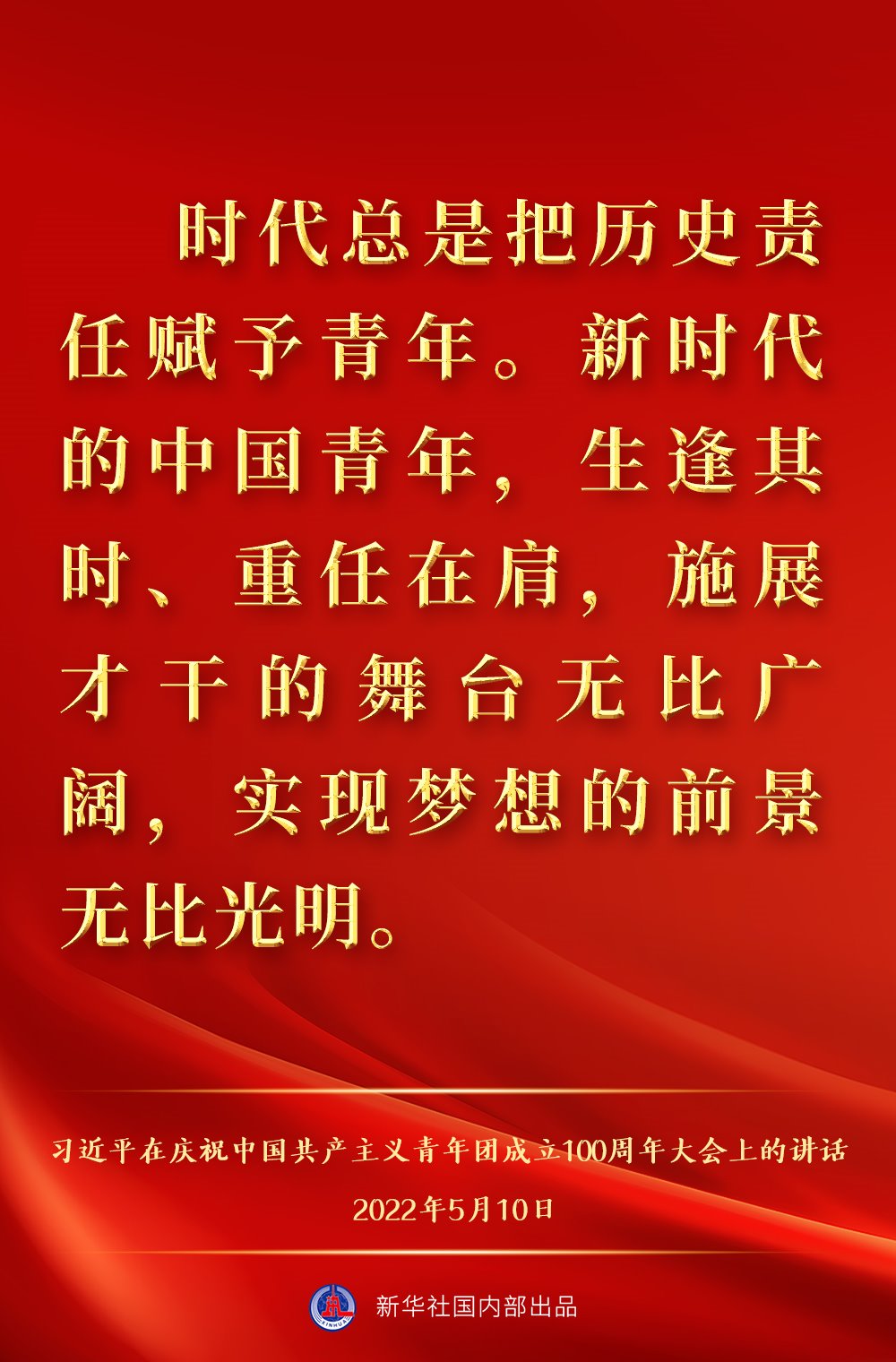 5月10日上午,中共中央總書(shū)記、國(guó)家主席、中央軍委主席習(xí)近平出席慶祝中國(guó)共產(chǎn)主義青年團(tuán)成立100周年大會(huì)并發(fā)表重要講話(huà),一起來(lái)看金句。