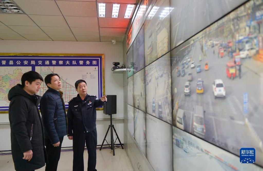 河北省寧晉縣紀(jì)檢干部借助公安機(jī)關(guān)交通監(jiān)控系統(tǒng),實(shí)時(shí)查看公車運(yùn)行軌跡,嚴(yán)查公車私用問題( 2018年12月29日攝)。新華社記者 牟宇 攝