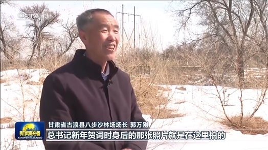 甘肅省古浪縣八步沙林場(chǎng)場(chǎng)長(zhǎng) 郭萬剛:總書記新年賀詞時(shí)身后的那張照片就是在這里拍的,他叮囑我們要把身體保護(hù)好才能把沙治好,把日子過好,治沙就是為了更好的生活。
