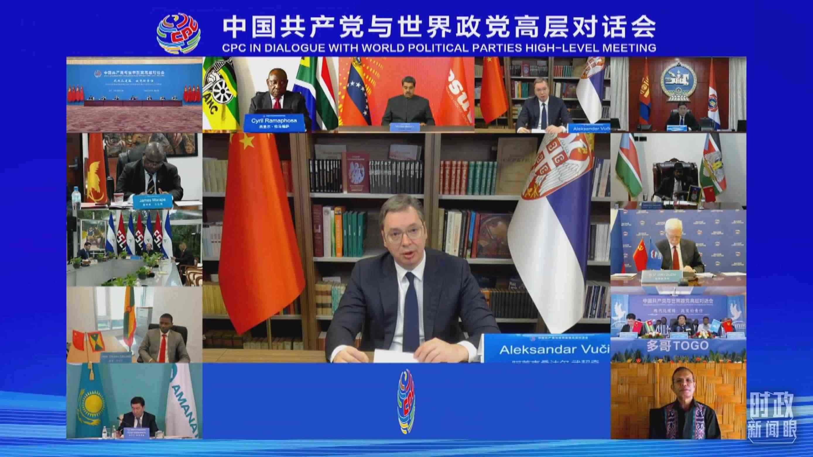 2021年7月6日,在慶祝中國共產(chǎn)黨成立100周年大會結束5天之后,中國共產(chǎn)黨與世界政黨領導人峰會以視頻連線方式舉行。來自160多個國家的500多個政黨和政治組織的領導人出席會議。