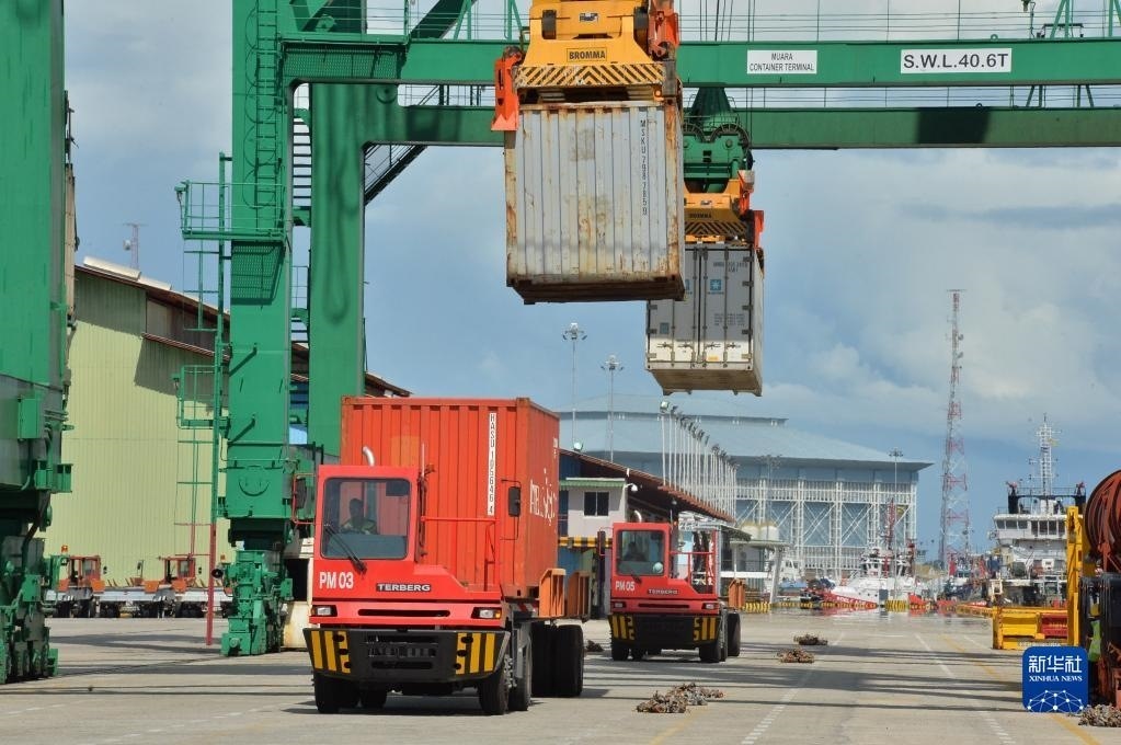 這是2022年1月1日拍攝的正在進(jìn)行集裝箱裝卸作業(yè)的文萊摩拉港碼頭。文萊摩拉港由中國和文萊合資企業(yè)——摩拉港有限公司運營。2022年1月1日,區(qū)域全面經(jīng)濟(jì)伙伴關(guān)系協(xié)定(RCEP)生效實施。新華社發(fā)(杰弗里·黃攝)