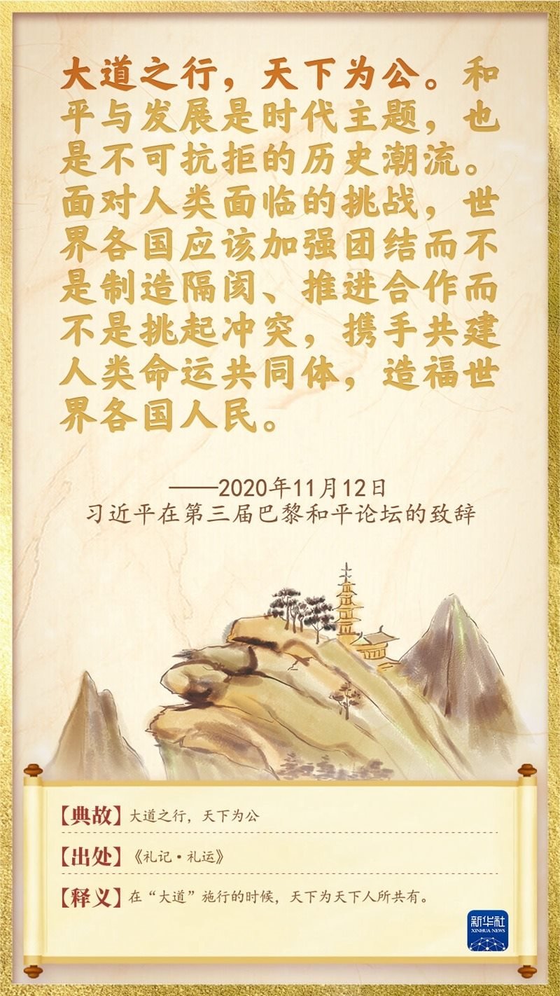 “這個世界,各國相互聯(lián)系、相互依存的程度空前加深,人類生活在同一個地球村里,生活在歷史和現(xiàn)實交匯的同一個時空里,越來越成為你中有我、我中有你的命運共同體。”2013年3月23日,習(xí)近平擔任中國國家主席后首訪俄羅斯,提出了人類命運共同體的重要理念。十年間,習(xí)近平總書記在不同場合反復(fù)強調(diào)“天下一家”、命運與共,主張各國和衷共濟,攜手創(chuàng)造世界的美好未來。我們梳理了總書記關(guān)于命運與共的用典,一起來學(xué)習(xí)。