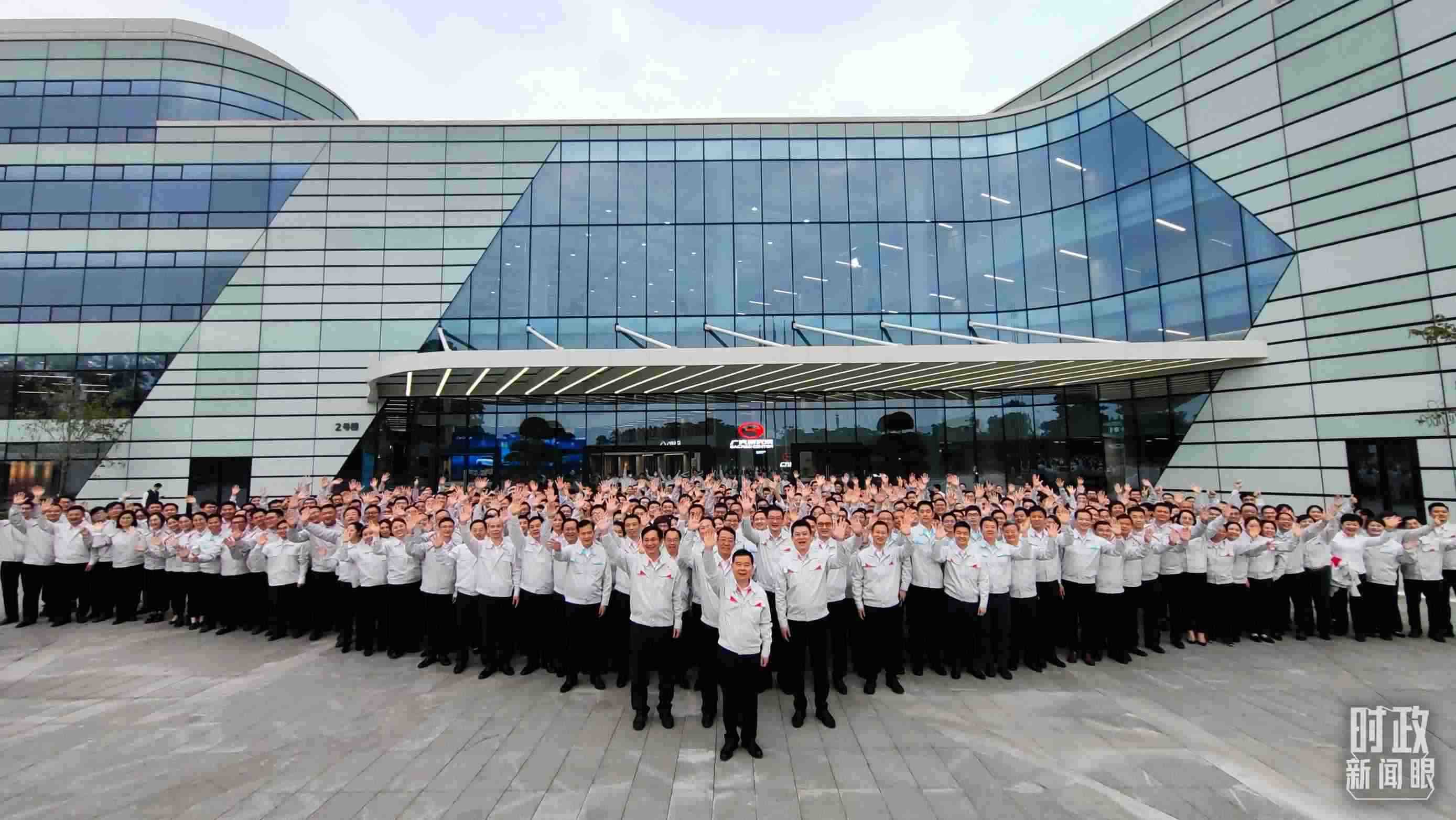 △考察當(dāng)天,廣汽員工代表大合影。(總臺央視記者張曉鵬拍攝)