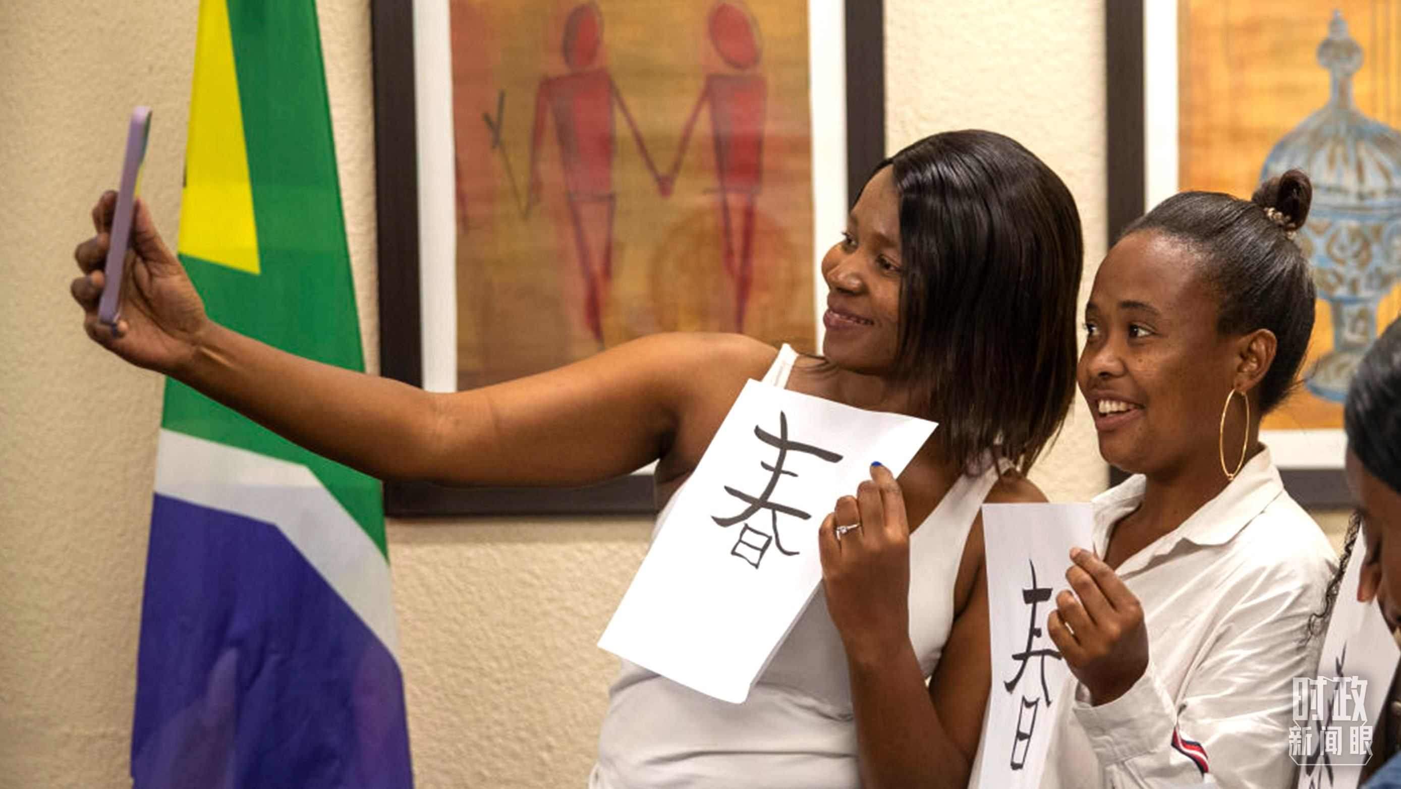 △南非學生與自己書寫的漢字合影。(資料圖)