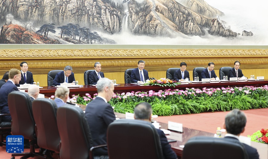 ??美中關(guān)系全國委員會董事會主席格林伯格、黑石集團董事長兼首席執(zhí)行官蘇世民、高通公司總裁兼首席執(zhí)行官安蒙、哈佛大學(xué)肯尼迪政府學(xué)院創(chuàng)始院長艾利森、美中貿(mào)易全國委員會會長艾倫等美方代表在發(fā)言中感謝習(xí)近平主席撥冗會見。他們表示,過去幾十年來,中國實現(xiàn)了非凡經(jīng)濟增長和轉(zhuǎn)型,體現(xiàn)了強大韌性和活力。在習(xí)近平主席卓越領(lǐng)導(dǎo)下,中國致力于發(fā)展新質(zhì)生產(chǎn)力,實現(xiàn)更可持續(xù)的高質(zhì)量發(fā)展。中國人民的發(fā)展權(quán)利應(yīng)該得到尊重。相信中國將實現(xiàn)自身發(fā)展目標,促進世界經(jīng)濟發(fā)展和融合。一個強大、繁榮的中國是世界的正能量。美中經(jīng)濟關(guān)系緊密依存,兩國唯有和平共處,才能實現(xiàn)各自發(fā)展繁榮?!靶尬舻椎孪葳濉辈⒎潜厝?。美國企業(yè)贊賞中方近期出臺的一系列進一步改革開放的重要舉措,看好中國經(jīng)濟發(fā)展前景,將堅定不移繼續(xù)深耕中國,同中國發(fā)展長期緊密的合作關(guān)系。習(xí)近平主席同拜登總統(tǒng)去年11月在舊金山成功會晤,提振了美國各界和世界對美中關(guān)系未來的預(yù)期和信心。美國工商界和戰(zhàn)略學(xué)術(shù)界支持美中雙方加強各層級交往交流,增進相互理解、信任與合作,攜手應(yīng)對全球性挑戰(zhàn),推動建立穩(wěn)定、可持續(xù)、富有成效的美中關(guān)系。