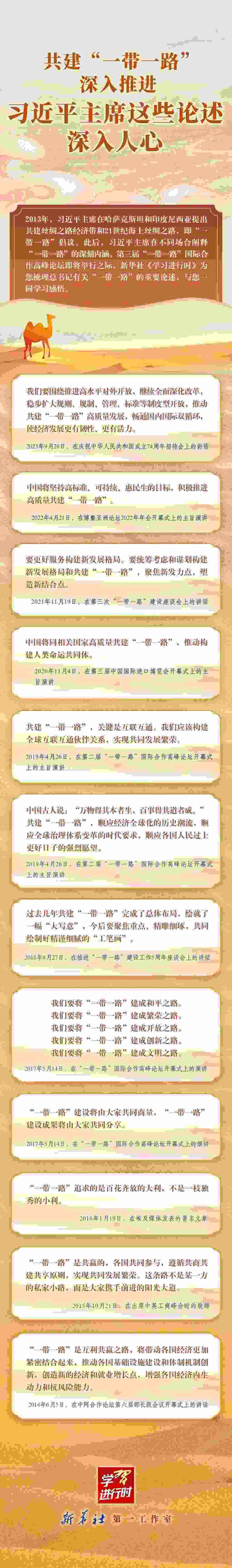 “歷史的道路,不全是坦平的,有時走到艱難險阻的境界,這是全靠雄健的精神才能夠沖過去的?!边@是中國革命先驅(qū)100年前說過的話。今天,推動人類和平和發(fā)展事業(yè)的接力棒,歷史地落到我們這一代人手中。讓我們以紀(jì)念和平共處五項原則發(fā)表70周年為起點,肩負(fù)歷史使命,攜手勇毅前行,共同推動構(gòu)建人類命運共同體、開創(chuàng)人類社會更加美好的未來!