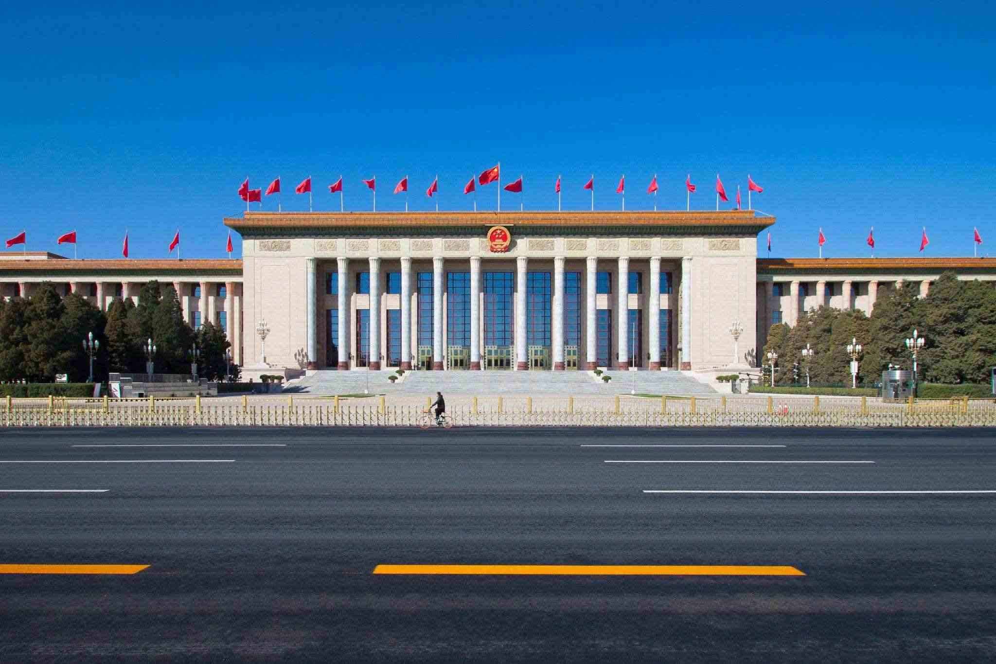 △北京人民大會堂設(shè)計中間部分最高,整組建筑平面呈“山”字形。