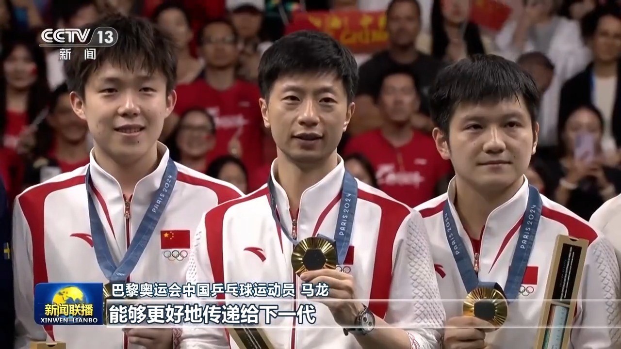 巴黎奧運會中國乒乓球運動員 馬龍:首先能夠在新中國成立75周年之際,不光是我自己拿到第六枚奧運金牌,同時能夠中國代表團在海外也取得最好成績,我還是非常開心,也非常榮幸。作為我來說,希望能夠把自己的一些比賽經驗以及一些對于乒乓球項目的理解,能夠更好地傳遞給下一代,然后希望他們能夠繼續(xù)為我們中國體育事業(yè)獻出自己的一份力量。