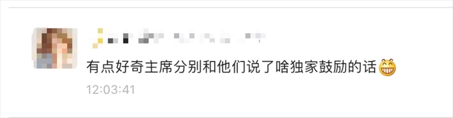 其間,總書(shū)記與不少運(yùn)動(dòng)員握手、交談。有網(wǎng)友好奇,總書(shū)記接見(jiàn)運(yùn)動(dòng)員時(shí)“都說(shuō)了什么獨(dú)家鼓勵(lì)的話”。