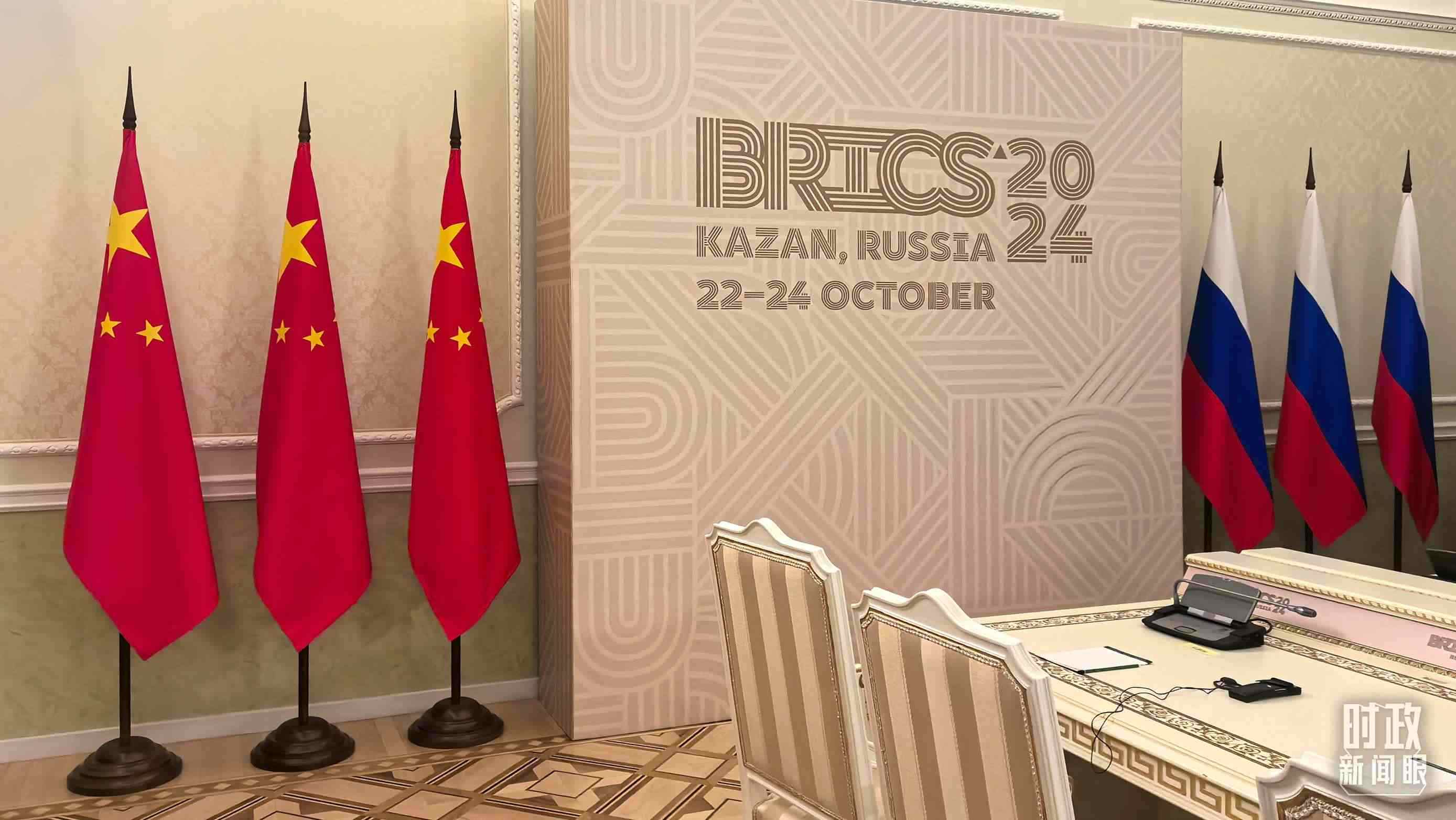 △ 中俄兩國(guó)元首喀山會(huì)晤開始前的現(xiàn)場(chǎng)。(總臺(tái)央視記者程鋮拍攝)