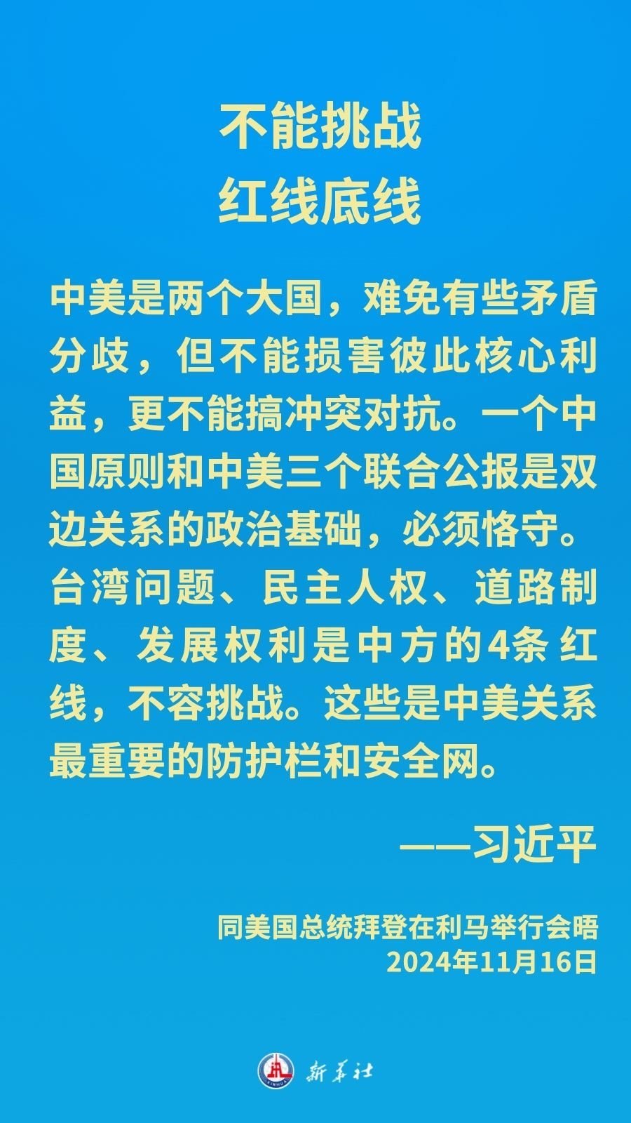當?shù)貢r間11月16日下午,習近平主席在秘魯利馬出席亞太經(jīng)合組織領導人非正式會議期間應約同美國總統(tǒng)拜登舉行會晤。就中美關系發(fā)展,習近平主席闡明中方立場——