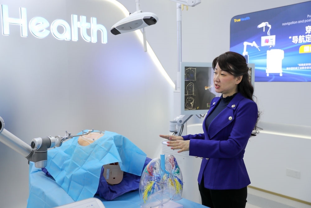 2024年11月24日,在橫琴澳門青年創(chuàng)業(yè)谷,澳門青年介紹“穿刺手術導航定位系統(tǒng)”。