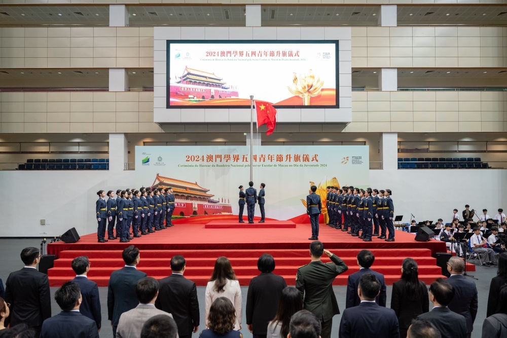 2024年5月4日,澳門學界升旗隊參加“澳門學界五四青年節(jié)升旗儀式”。五四青年節(jié)當天,澳門特區(qū)政府教育及青年發(fā)展局舉辦多項紀念活動,旨在加深澳門青年對五四運動歷史意義和時代價值的認識,幫助青年更好地實踐和傳承五四精神。