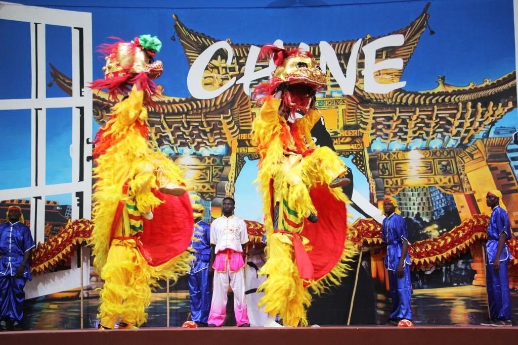 △當(dāng)?shù)貢r間1月25日,在貝寧科托努的貝寧中國文化中心,演員在表演舞獅慶祝春節(jié)。
