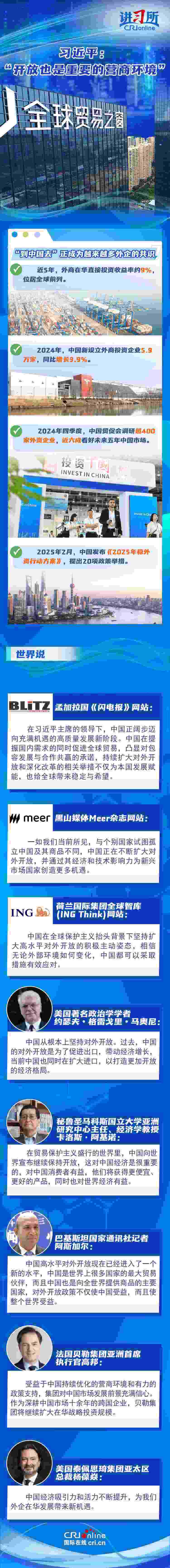 “中國(guó)開(kāi)放的大門(mén)不會(huì)關(guān)閉,只會(huì)越開(kāi)越大。”去年12月,中國(guó)將“擴(kuò)大高水平對(duì)外開(kāi)放,穩(wěn)外貿(mào)、穩(wěn)外資”列為今年政府重點(diǎn)任務(wù)。新年以來(lái),隨著政策紅利持續(xù)釋放,外資不斷用行動(dòng)為中國(guó)投下“信心票”:德國(guó)光電行業(yè)巨頭蔡司宣布將在上海購(gòu)地自建大中華區(qū)總部園區(qū),意大利百旺集團(tuán)亞洲總部暨新工廠(chǎng)在蘇州高新區(qū)開(kāi)業(yè),日本豐田汽車(chē)決定在華獨(dú)資設(shè)立雷克薩斯純電動(dòng)汽車(chē)及電池的研發(fā)和生產(chǎn)公司……在他們看來(lái),中國(guó)持續(xù)優(yōu)化營(yíng)商環(huán)境、擴(kuò)大高水平開(kāi)放,經(jīng)濟(jì)吸引力和活力不斷提升,不僅為中國(guó)發(fā)展賦能,也給全球帶來(lái)穩(wěn)定與希望。