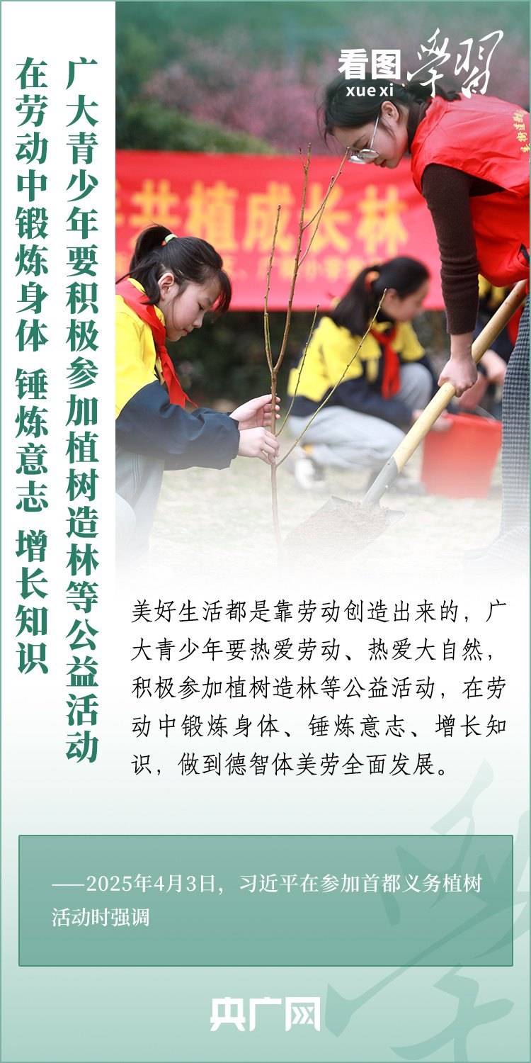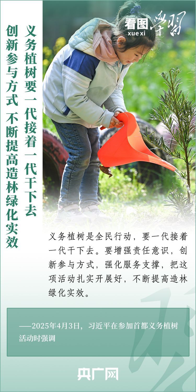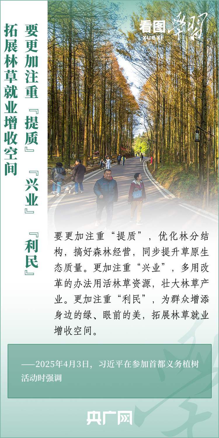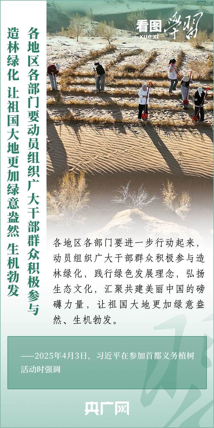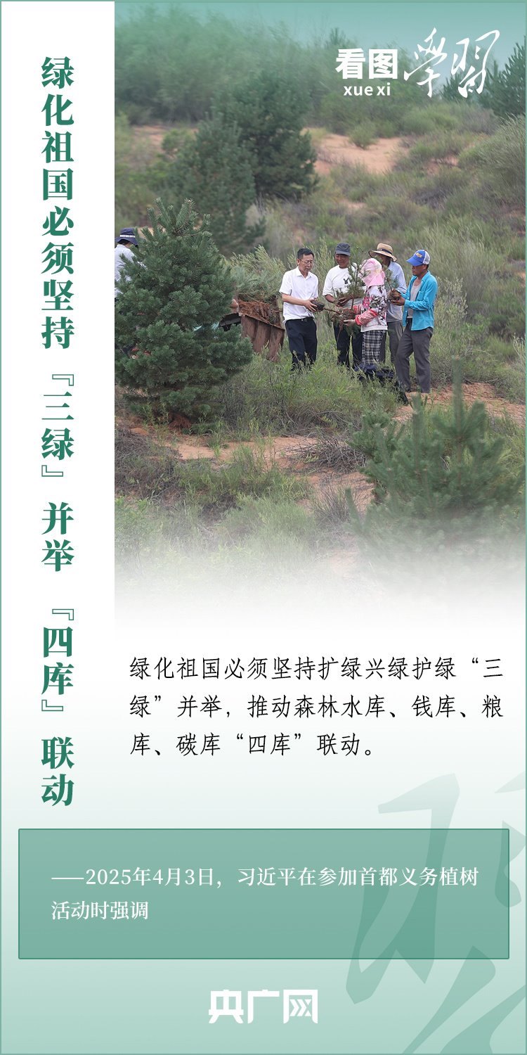 植樹造林是生態(tài)文明建設(shè)重要一環(huán)。4月3日,習(xí)近平總書記參加首都義務(wù)植樹活動。在植樹現(xiàn)場,總書記高度肯定國土綠化工作取得來之不易的成績,強調(diào)綠化祖國必須堅持“三綠”并舉、“四庫”聯(lián)動,要更加注重“提質(zhì)”“興業(yè)”“利民”,“匯聚共建美麗中國的磅礴力量,讓祖國大地更加綠意盎然、生機(jī)勃發(fā)”。一起來學(xué)習(xí)!