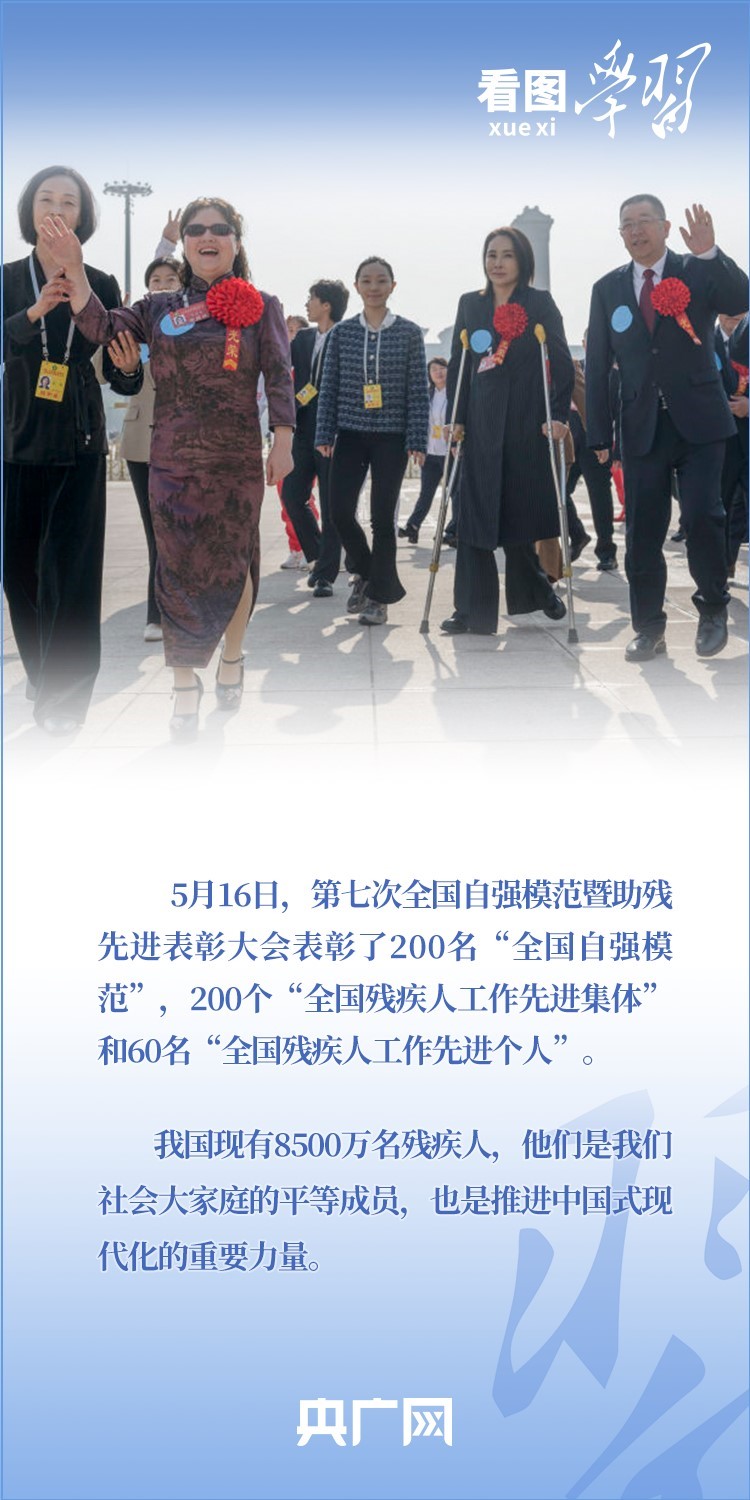 “殘疾人是推進中國式現(xiàn)代化的重要力量,也是需要格外關(guān)心、格外關(guān)注的特殊困難群體?!?月16日,第七次全國自強模范暨助殘先進表彰大會在京召開。習近平總書記作出重要指示,代表黨中央,向受表彰的全國自強模范和殘疾人工作先進集體、先進個人表示祝賀,向全國廣大殘疾人及其親屬、殘疾人工作者致以問候。