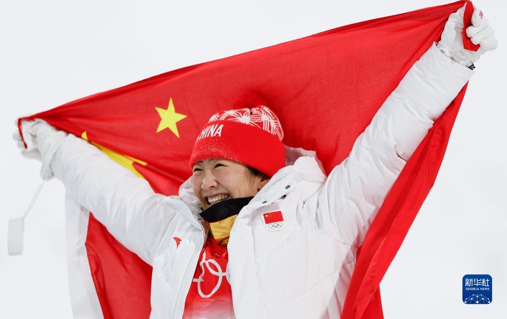 背景:在獲得自由式滑雪女子空中技巧冠軍后,老將徐夢桃身披國旗,一遍一遍高聲呼喊著,眼中帶淚。12年,四屆冬奧會,故事終于有了圓夢的結(jié)局。