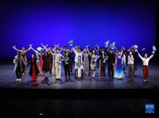 4月3日,演員在舞劇《藍(lán)色裙擺》中表演。