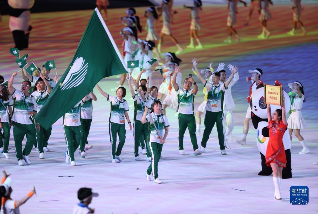 7月28日,中國澳門大學(xué)生體育代表團在開幕式上入場。