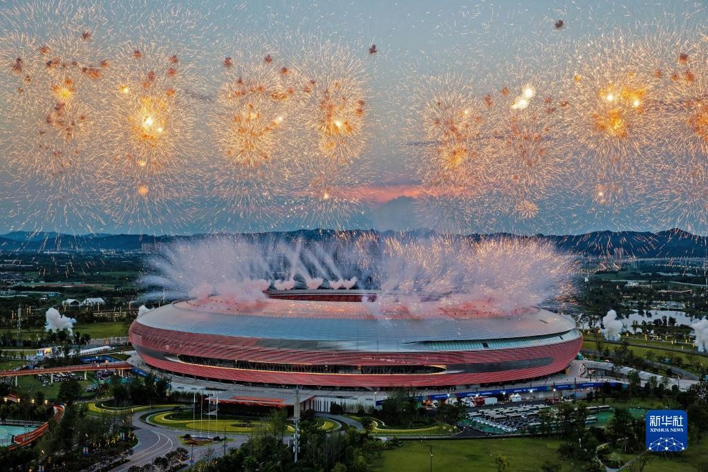 當(dāng)晚,第31屆世界大學(xué)生夏季運動會開幕式在成都東安湖體育公園主體育場舉行。