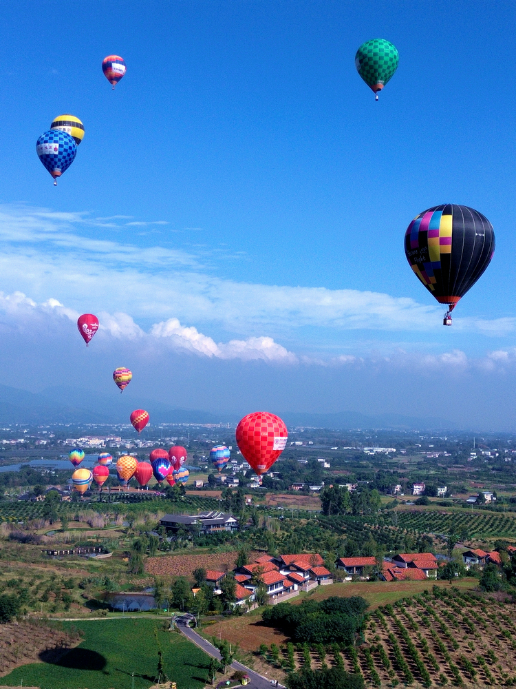 隨著開幕儀式的推進(jìn),30支熱氣球依次完成點(diǎn)火、充氣,在歡呼聲中緩緩升空。紅黃藍(lán)綠的熱氣球與郁郁蔥蔥的柑橘園、錯(cuò)落有致的川西民居相映成趣,構(gòu)成一幅絕美畫卷。據(jù)了解,此次全國熱氣球精英賽(四川金堂站)作為活動(dòng)核心賽事,將在10月15日-19日期間開展游蕩華爾茲、定點(diǎn)投靶、肘形飛行等10余項(xiàng)專業(yè)競技項(xiàng)目,最讓人期待的是本次賽事將熱氣球飛躍龍泉山作為了長距離飛行的競賽科目,這將是熱氣球首次飛越龍泉山。屆時(shí),參賽選手在比賽的同時(shí)還可以在空中觀賞龍泉山脈、千里沱江、絕美古剎等景觀。