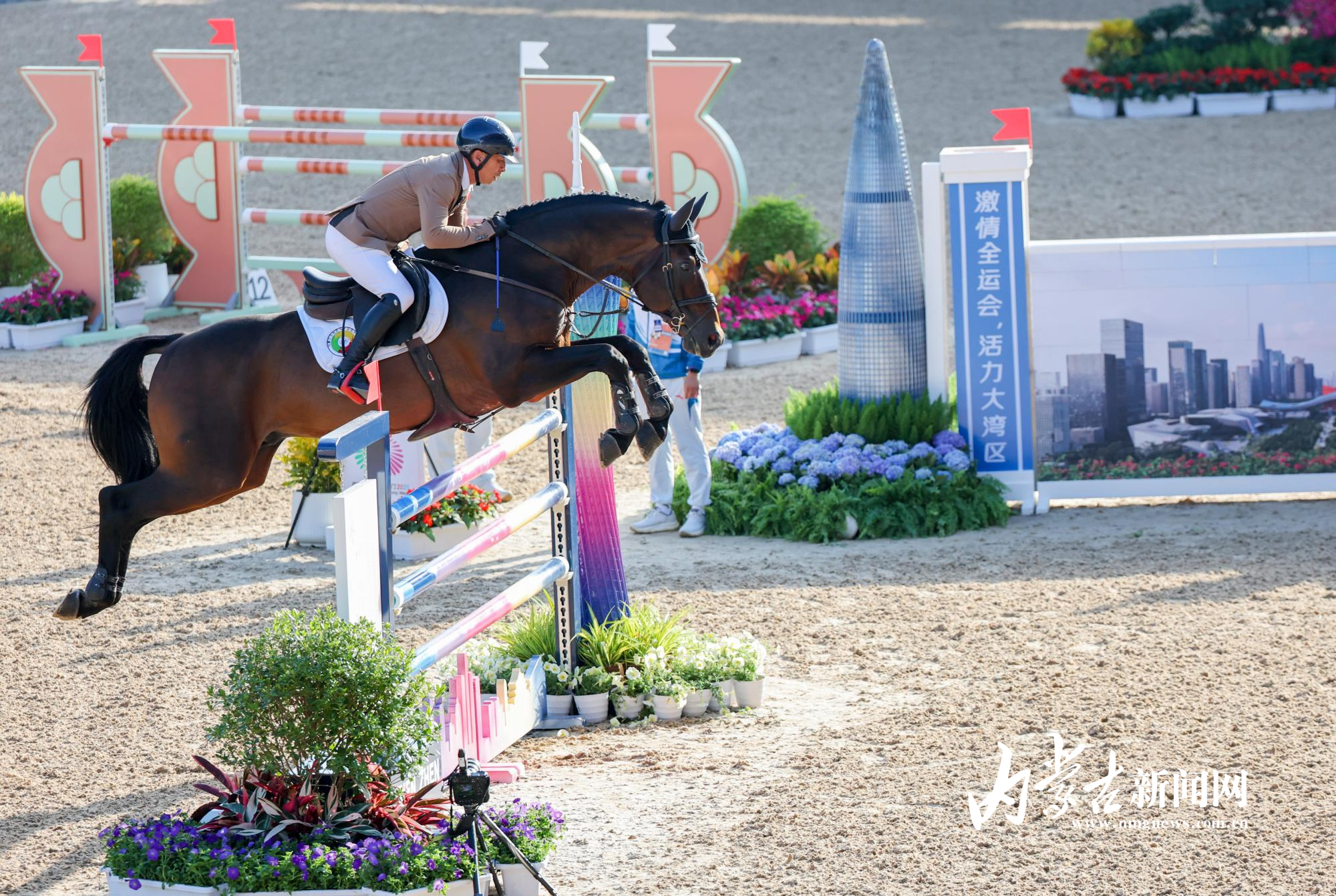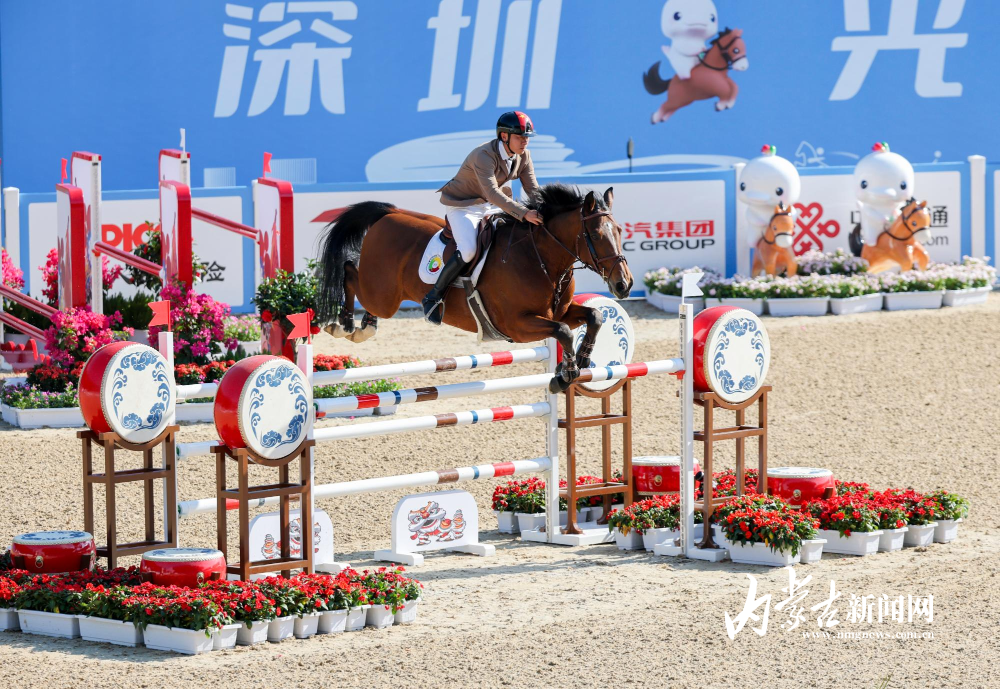 11月17日,第十五屆全國運動會馬術(shù)項目場地障礙團(tuán)體賽在深圳市光明國際馬術(shù)中心進(jìn)行,由達(dá)日瑪、劉同晏、張睿、韓豐組成的內(nèi)蒙古隊?wèi){借兩輪穩(wěn)定發(fā)揮,以總罰分31分的成績斬獲銅牌。