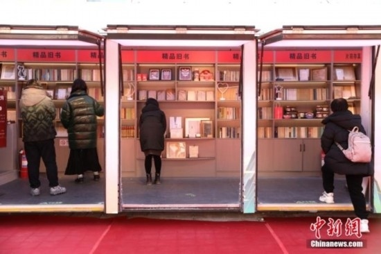 資料圖:市民在北京王府井書香市集上選購書籍。中新社記者 趙雋 攝
